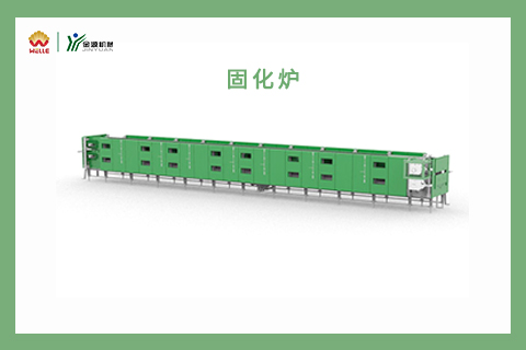 固化爐將未固化棉氈經(jīng)上下兩輸送帶輸送、加壓,同時鼓入熱風進行烘干,使二次氈里的粘結(jié)劑固化