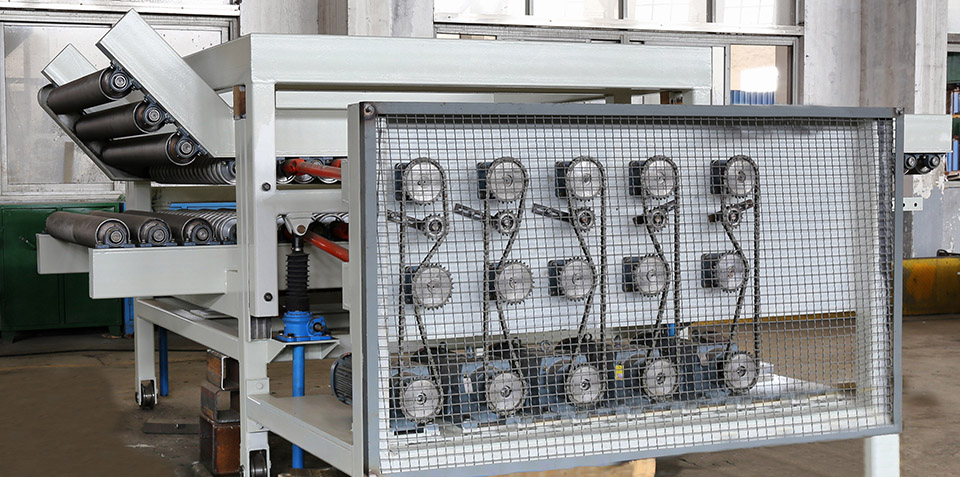 打褶機(jī)由下部固定的五組輸送輥道和上部的五組可升降的加壓輥道組成,并可根據(jù)產(chǎn)品要求的不同調(diào)節(jié)上下輥道的距離,以及打褶機(jī)入口段的角度。