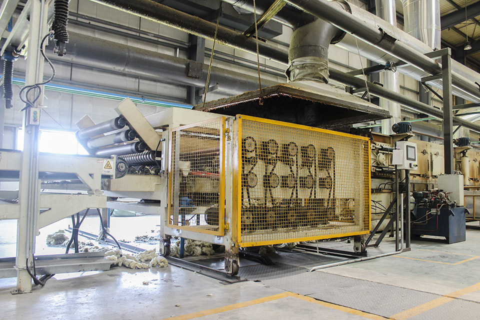 根據(jù)生產(chǎn)要求,打褶機(jī)可對(duì)二次棉氈進(jìn)行縱向壓縮,從而提高產(chǎn)品的強(qiáng)度。